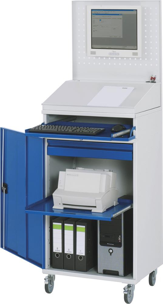 Computer-Schrank B1100xT520xH1895 mm RAL 7035/5010 mobil Gehäuse offen K23520908