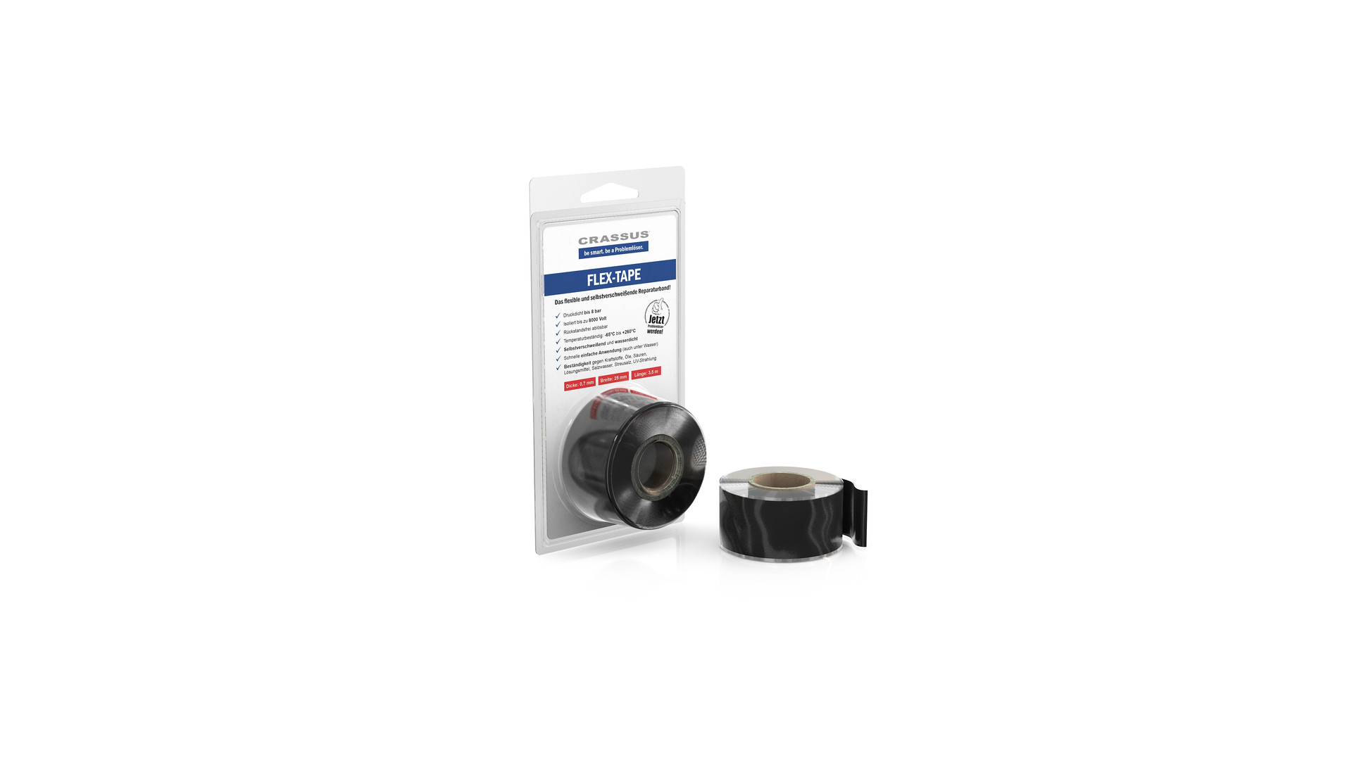 extrem vielseitig einsetzbares selbstverschweißendes Reparaturband, Reparieren von Leckagen sowie diverse zusätzliche Einsatzmöglichkeiten, wie z.B. Nutzung zur elektrischen Isolierung, Druckfest bis 8 bar, isoliert bis zu 8000 Volt, Temperaturbeständig von -65 °C bis 260 °C sowie Beständig gegen Kraftstoffe, Öle, Säuren, Lösungsmittel, Salzwasser, Streusalz und UV-Strahlung