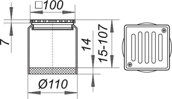 Dallmer Aufsatz ECS 10 Serie 10 100 x 100 mm, Rost Edelstahl 1.4301, massiv 5mm, verschraubt