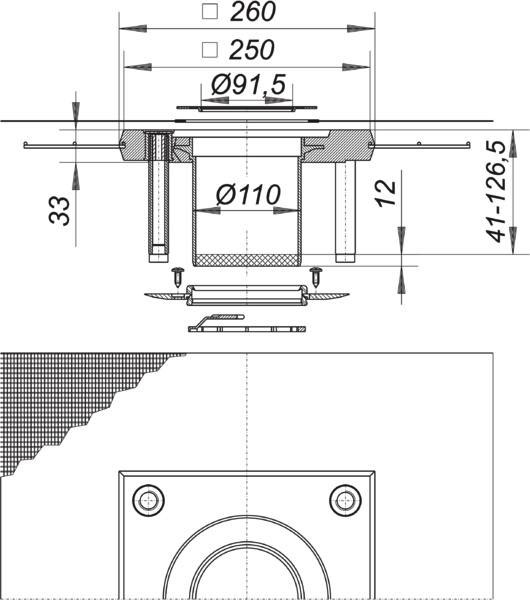 passend zu den Ablaufgehäusen 40, 42 und 46 sowie den Balkonablaufgehäusen 83 und 84, mit Polymerbetonkragen mit eingegossener Baustahlmatte, Justierschrauben zur Höhenverstellung, Verlängerung aus ABS, seitenverstellbare Rahmenaufnahme, Glasgewebematte, Rückstaudichtung, Distanzring, Bauschutzdeckel, alle Aufsätze zu CeraDrain S 10 sind stufenlos verstellbar, Seitenverstellbarkeit +/- 5,5 mm, Höhenverstellbarkeit bis zu 40 mm