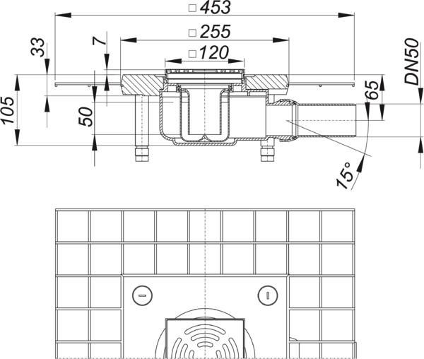 Dallmer Bodenablauf CeraDrain 48 K 12, 120 x 120 mm, DN 50, seitlich, Schallschutz