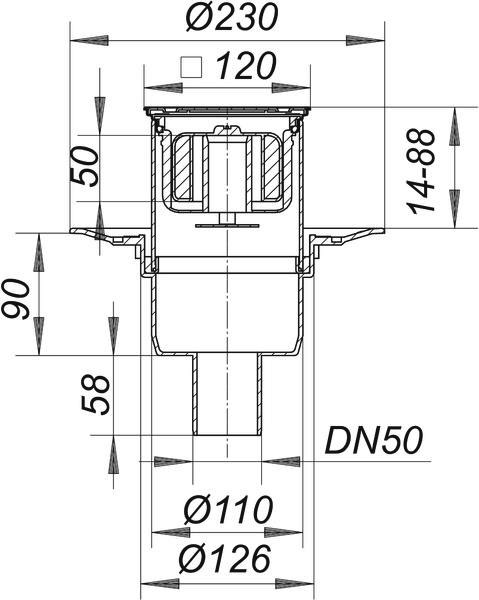 Dallmer Bodenablauf S 10 30 PRIMUS E 12 120 x 120 mm, DN 50, Edelstahl