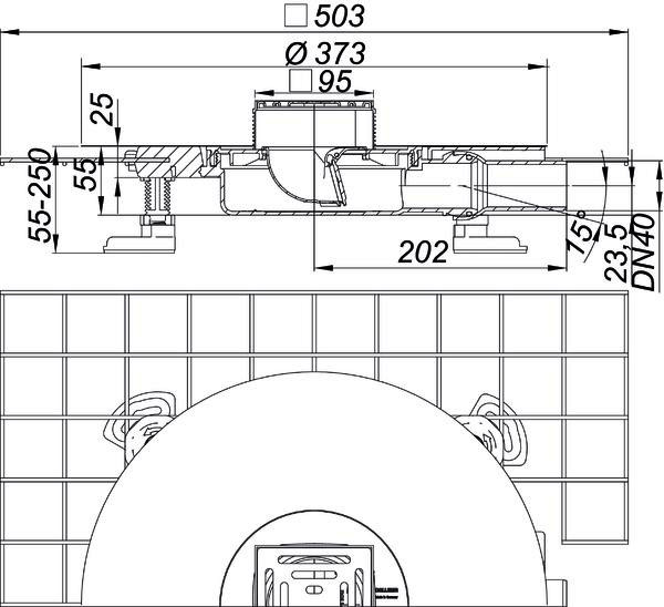 vorkonfektioniertes Set, mit Positionierhilfe, Aufsatz DallDrain Pure mit Edelstahlrost im Kunststoffrahmen, Ablaufstutzen DN 40 seitlich, mit Kugelgelenk, verstellbar von 0-15°, Rost aus Edelstahl, Rahmen aus Kunststoff, Polymerbetonkragen mit eingegossener Baustahlmatte, flexible und einklickbare Dichtmanschette zum sicheren Anschluss an Verbundabdichtungen gem. DIN 18534, komplett herausnehmbarer Geruchs- und Reinigungsverschluss, mechanisch wirkend (abweichend von DIN EN 1253), Bauschutzabdeckung, vier schallentkoppelte Montagefüße zur Fixierung und Höheneinstellung 55-250 mm, Aufsatzverlängerung kürzbar für Bodenbeläge 10-36 mm (mit Kleber), Estrichverstärkungselement zum Schutz des Ablaufstutzens, Ablaufgehäuse und Ablaufstutzen Polypropylen, hochschlagfest, Rost Edelstahl 1.4301, Belastungsklasse K3 (300 kg), Aufsatzverlängerung und Rahmen aus ABS, bestehend aus Art.-Nr. 517258 und 518439