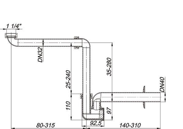 Dallmer Waschtisch-Möbel-Siphon 137 DN 40, hochschlagfest, PP
