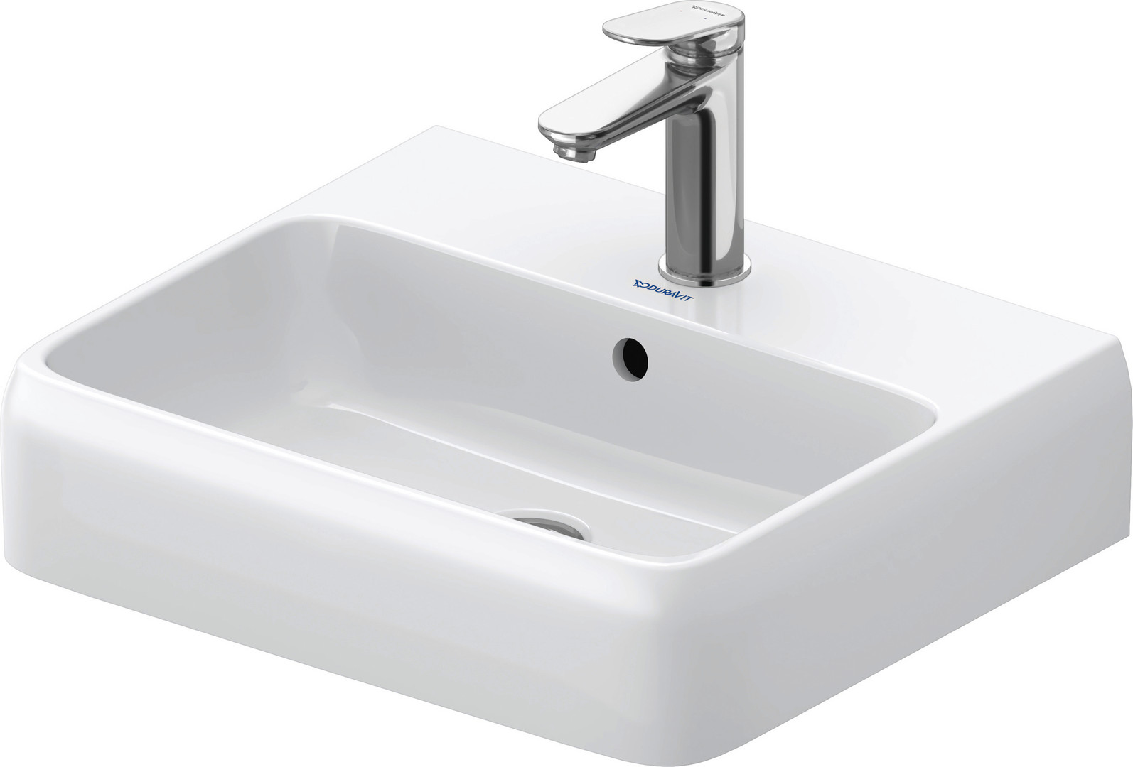 Duravit Aufsatz-Waschtisch Qatego 50 x 42 cm, weiß Hochglanz HygieneGlaze, mit Hahnloch, Überlauf, Hahnlochbank, geschliffen