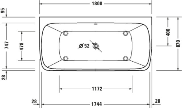 Duravit Badewanne Qatego 180 x 87 cm, Vorwand, 2 Rückenschräge, weiß