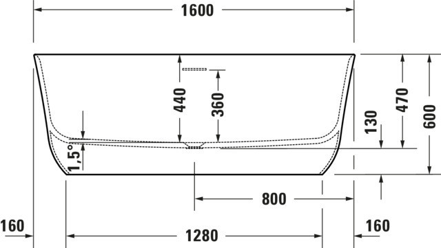 Duravit Badewanne Soleil by Starck 160 x 80 x 60 cm, freistehend, 2 Rückenschräge, matt-weiß
