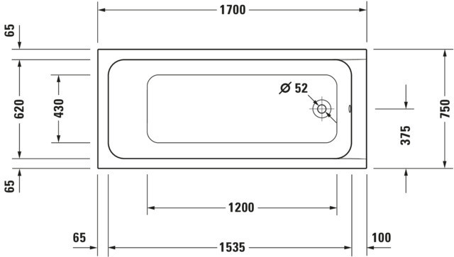 Duravit Rechteck-Badewanne D-Code 170 x 70 x 42 cm, Ablauf im Fußbereich, 1 Rückenschräge, weiß K20734240