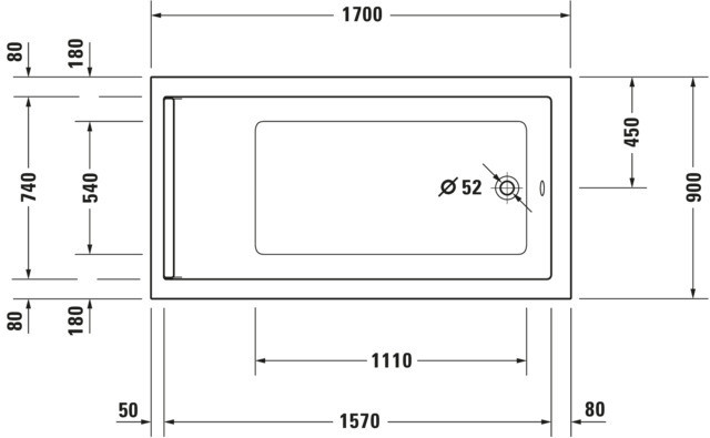 Duravit Rechteck-Badewanne Starck 170 x 90 x 46 cm, Einbauversion, 1 Rückenschräge, weiß K20734274