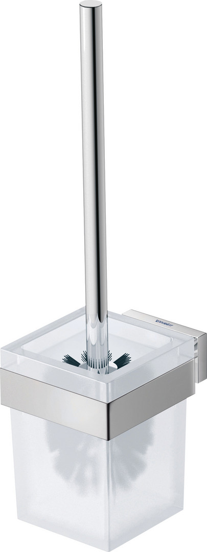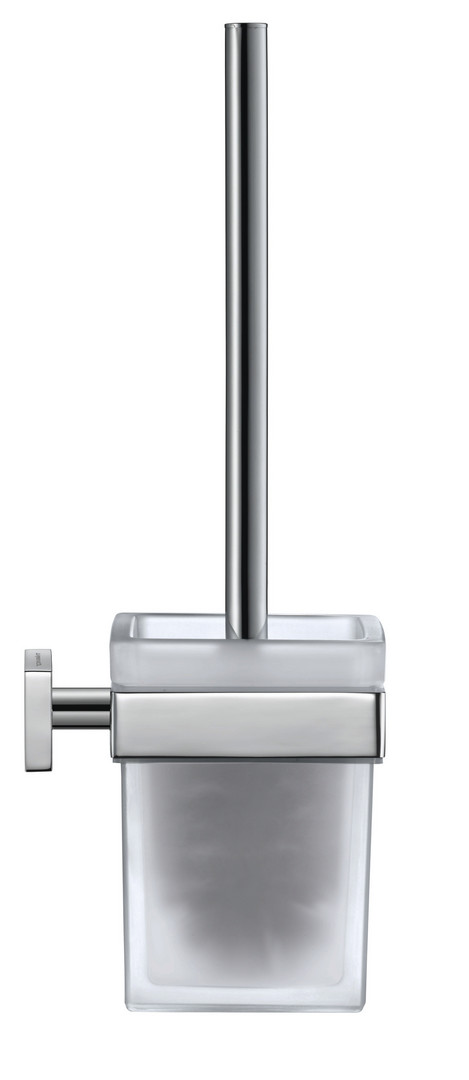 Duravit WC-Bürstengarnitur Karree 9,6 x 12,6 cm, Wandmontage, Glas weiß matt, Halter chrom