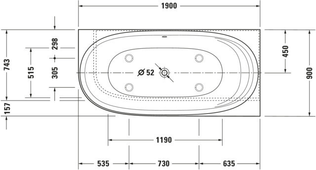 Duravit Whirlwanne Cape Cod 190x90cm, Ecke rechts, 1 Rückenschräge, weiß, Air-System