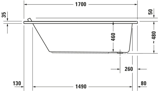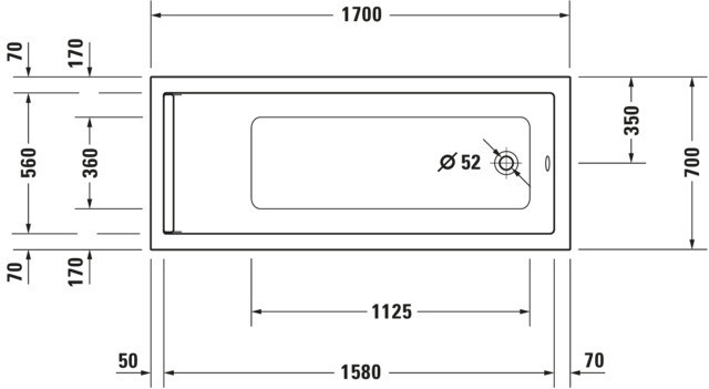 Duravit Whirlwanne Starck 170 x 70 cm, Combi-System E, Einbauversion, 1 Rückenschräge, weiß