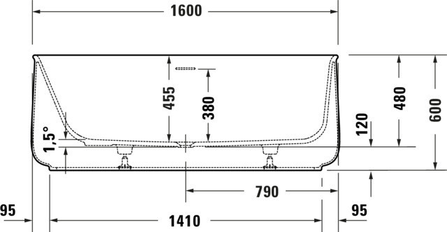 zentraler Ablauf, mit nahtloser Verkleidung, Material Mineralguss, Materialart DuraSolid a, 700462 00000 0000 unterschiedliche Rückenschräge an Kopfseite, Nutzinhalt 306/366 l