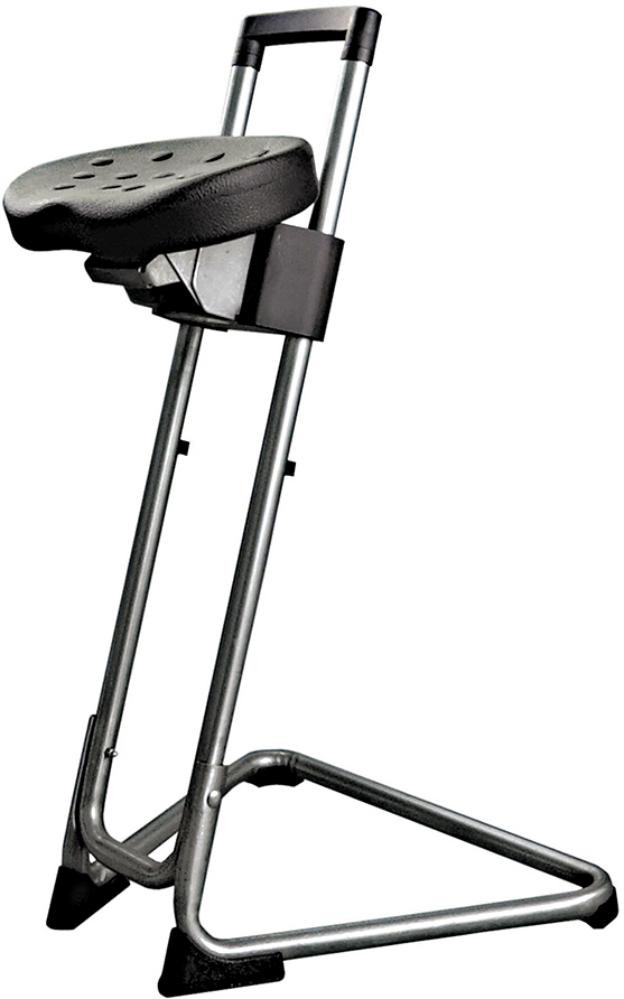 ESD Stehhilfe Edelstahl PU-Sitz schw. bis 110 kg Sitzhöhenverstellung von 600-850
