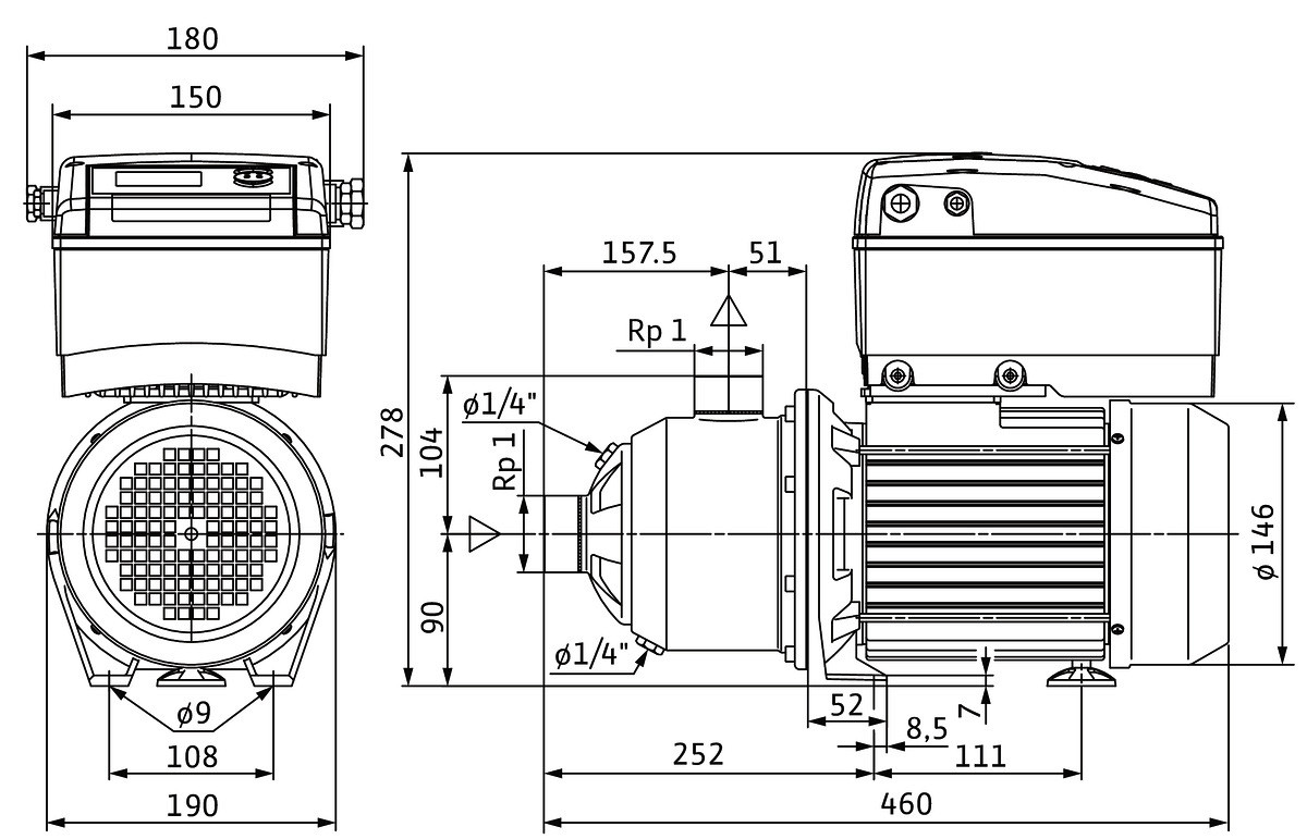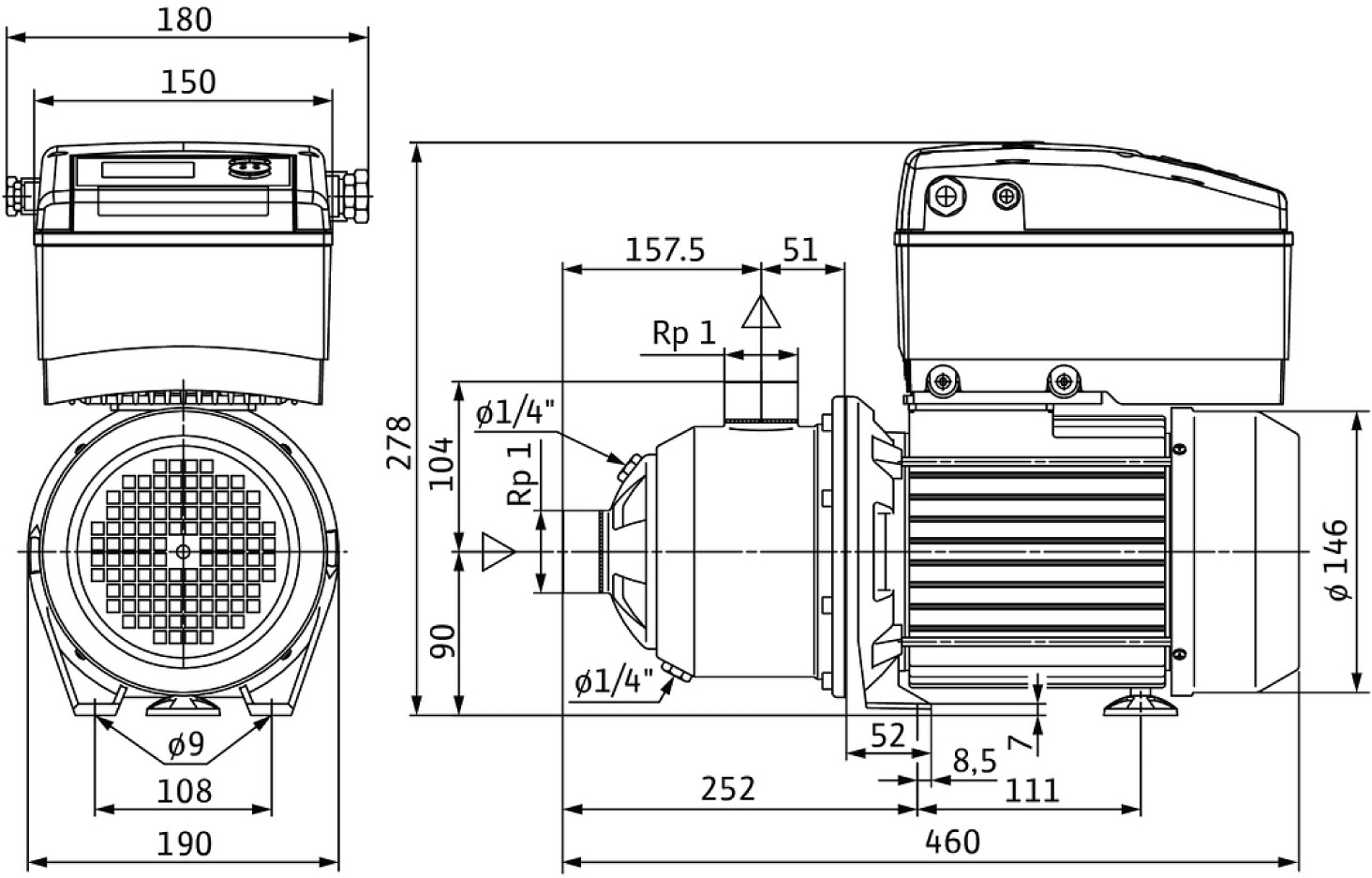 Economy MHIE 204-1 (1~220/230/240 V, EPDM), Rp 1 (PN 10), Rp 1 (PN 10), 1100 W