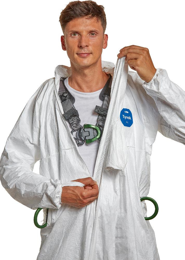 Anwendungsbereiche: Arbeiten mit Auffanggurt in kontaminierten Umgebungen, wie z.B. bei der Lackierung, bei der Reinigung in Silos, bei Wartungsarbeiten