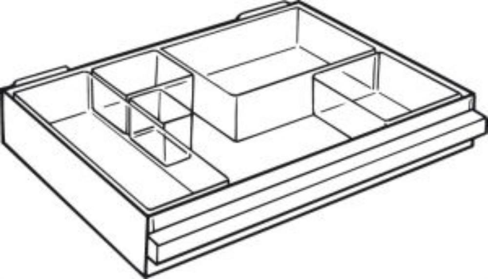 Hinweis: Schublade Typ 250-3 kann durch Einsätze (A-6-1, A 7-1, A 7-2, A 8-1, A 9-1) und Einsatz-Sets bestückt werden. Trennwand-Sets und Einsätze gehören nicht zum Lieferumfang und müssen separat bestellt werden.