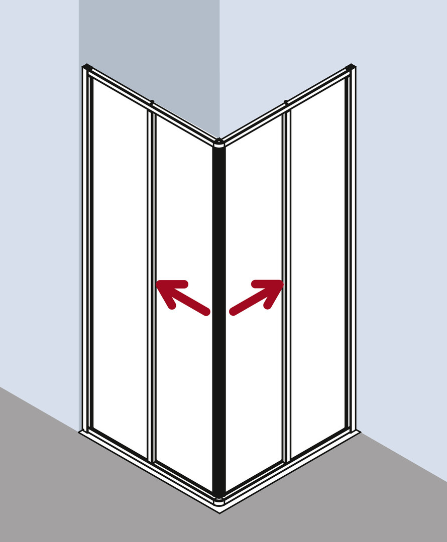 Glasstärke 3 mm, nach einer Seite öffnend, mit Festfeld, Profile und Griffleisten aus eloxiertem Aluminium, Verstellmöglichkeit im Wandprofil 22 mm, durchgehende Magnetleisten und Dichtprofile, mit Befestigungsmaterial und Bodenprofil (Höhe 32 mm)
