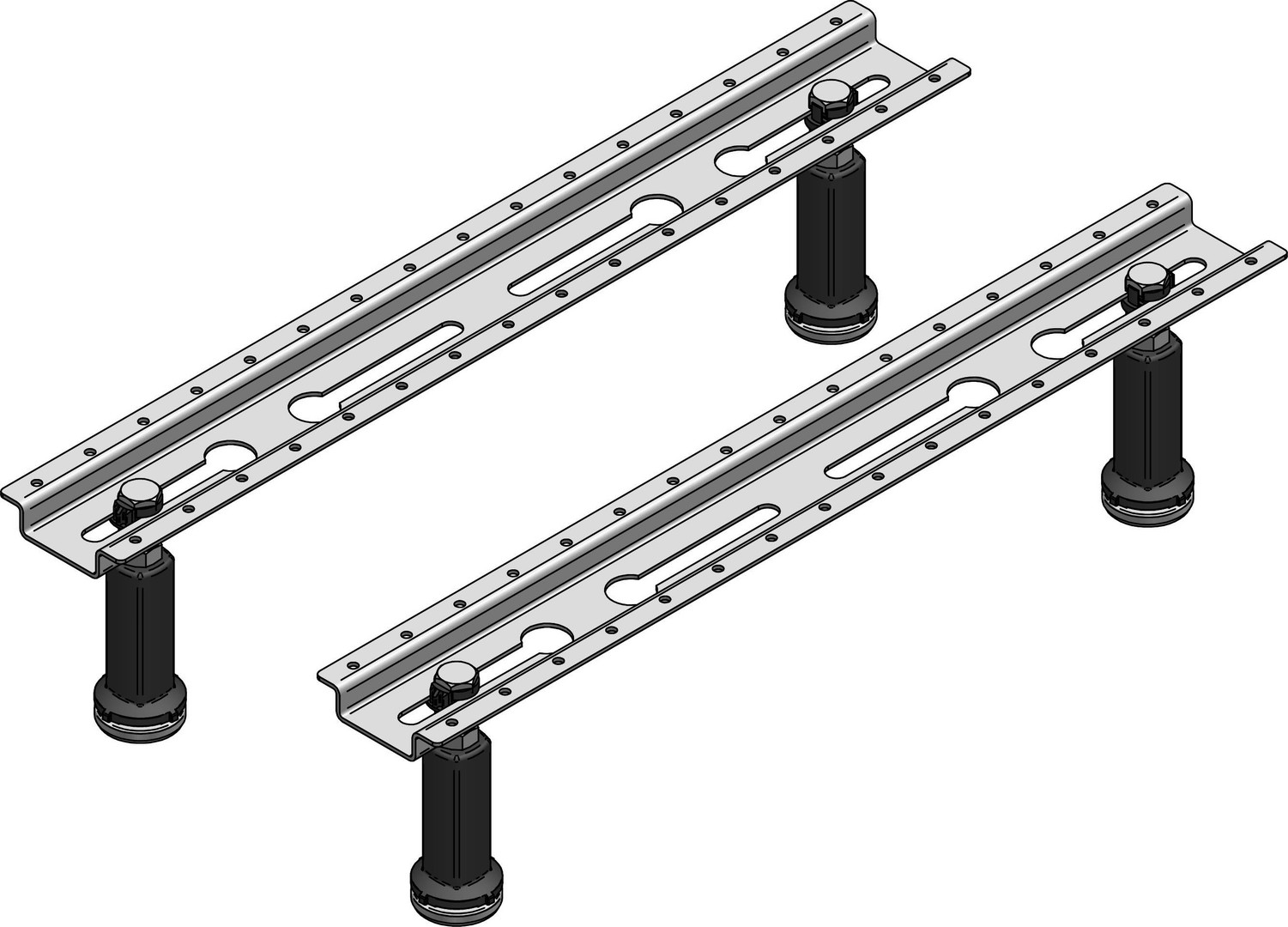Höheneinstellbereich 125-195 mm, mit 2x verzinkte Stahlprofile L= 500 mm, 4x Stellfüße mit Klemmbefestigung und Dreh- und Pendellager sowie Schallschutz, Befestigungsmaterial und einer ausführlichen Montageanweisung, die Dreh- und Pendellager an den Stellfüßen garantieren eine vollflächige Auflage d. Stellfüße auch bei Bodenunebenheiten und Ablaufgefälle der Wanne