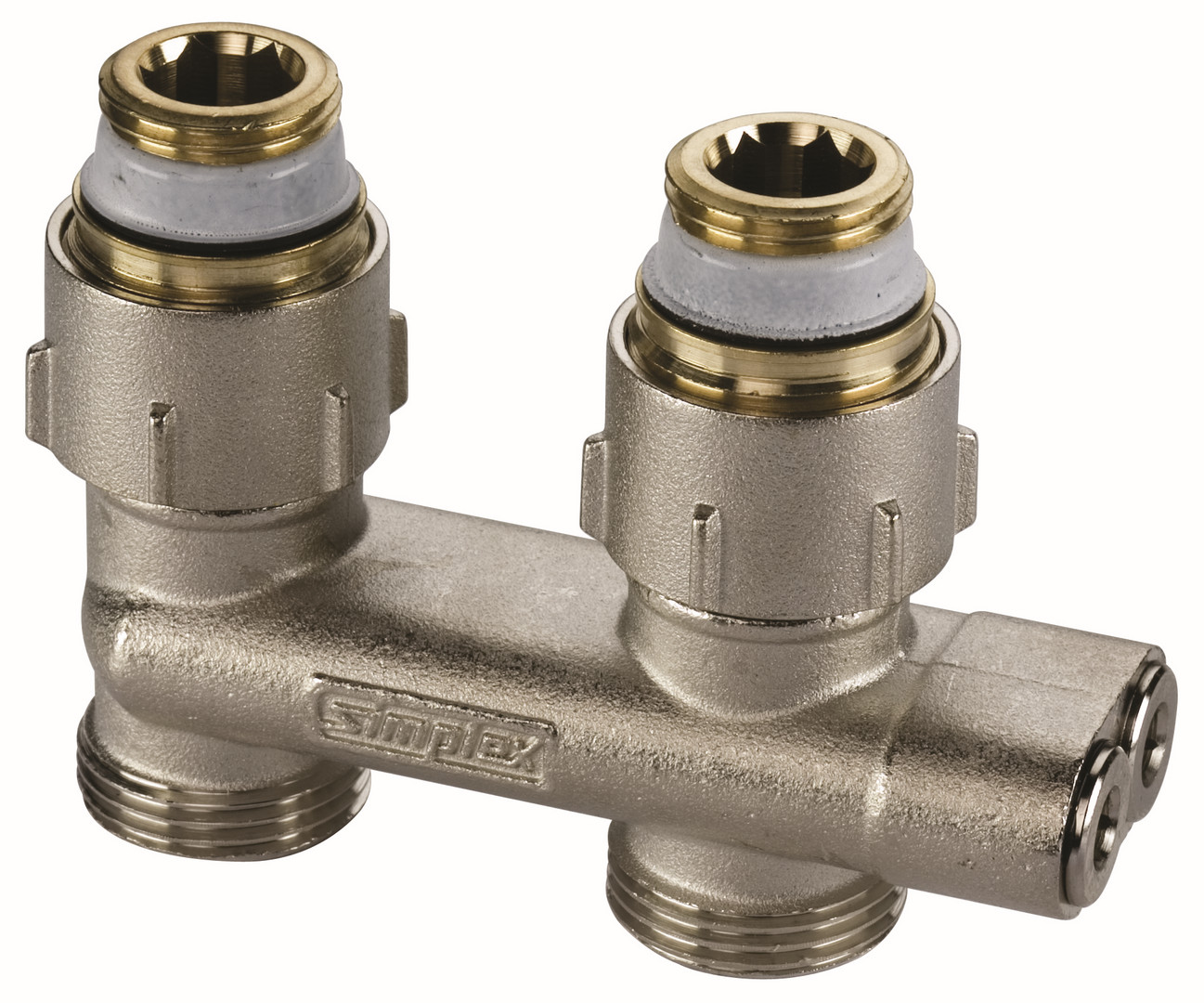 mit Anschlussnippel für vertauschten Vor- und Rücklauf, kompakte und absperrbare Anschlussarmatur für Ventil-Kompaktheizkörper, rohrseitig mit Eurokonus für den Anschluss mit Klemmverschraubungen, 50 mm Achsabstand, mit selbstdichtenden Anschlussnippeln für Ventil-Kompaktheizkörper mit Rp 1/2 Hahnblock-Anschluss, Dichtmaterialien aus EPDM, max. Betriebstemperatur: 110 °C Dauertemperatur/130 °C kurzzeitig, max. Betriebsdruck 10 bar