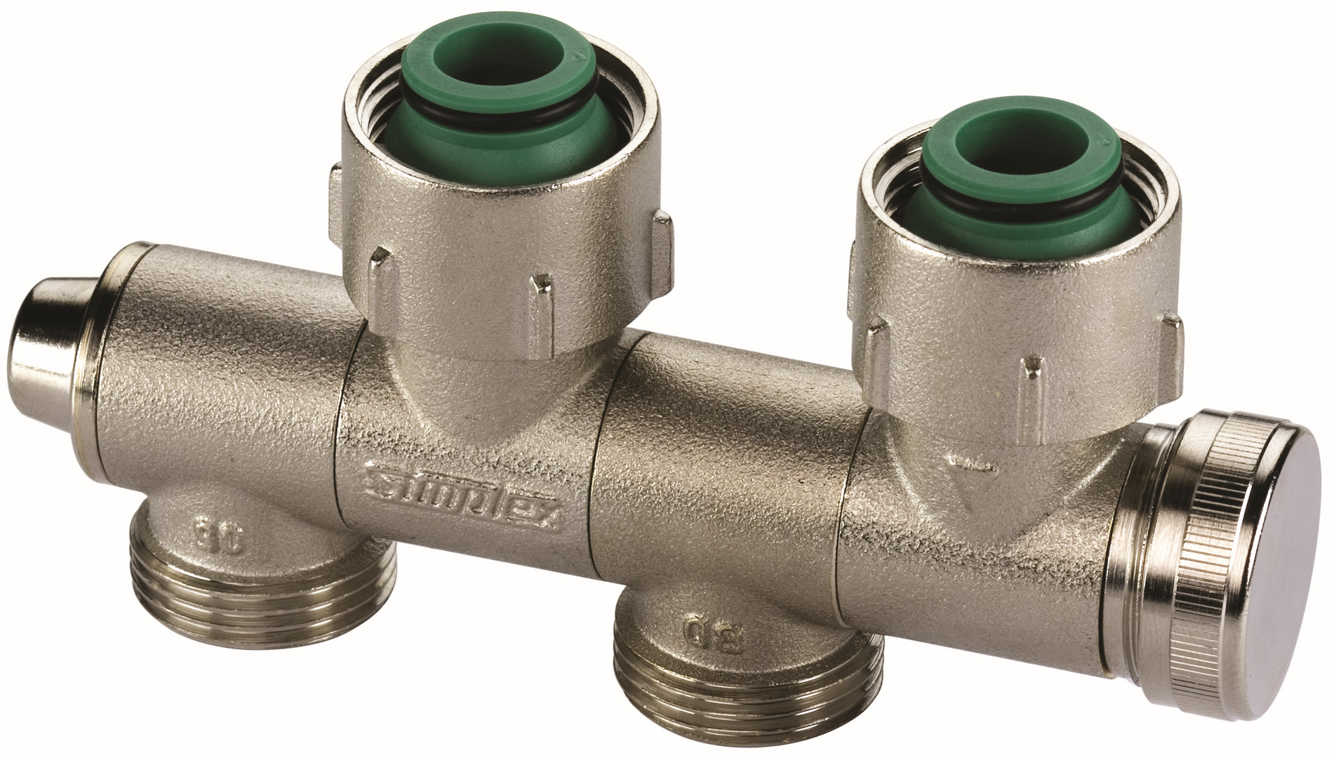absperrbar, für Ventil-Kompaktheizkörper mit stufenlos schwenkbaren Anschlüssen für Eck- und Durchgangsanschluss, links- oder rechtsseitiger Anschluss, für Einrohr- (Heizkörperanteil 25-100 %) oder Zweirohrbetrieb, entleeren oder füllen ohne Adapter, nur durch Aufschrauben einer handelsüblichen Schlauchverschraubung, rohrseitig mit Eurokonus für den Anschluss mit Klemmverschraubungen, 50 mm Achsabstand, 25 mm Achsversatz, mit selbstdichtenden Anschlussnippeln für Ventil-Kompaktheizkörper mit Rp 1/2 Hahnblock-Anschluss, 4 Einbauvarianten, Dichtmaterialien aus EPDM, max. Betriebstemperatur: 110 °C Dauertemperatur/130 °C kurzzeitig, max. Betriebsdruck 10 bar