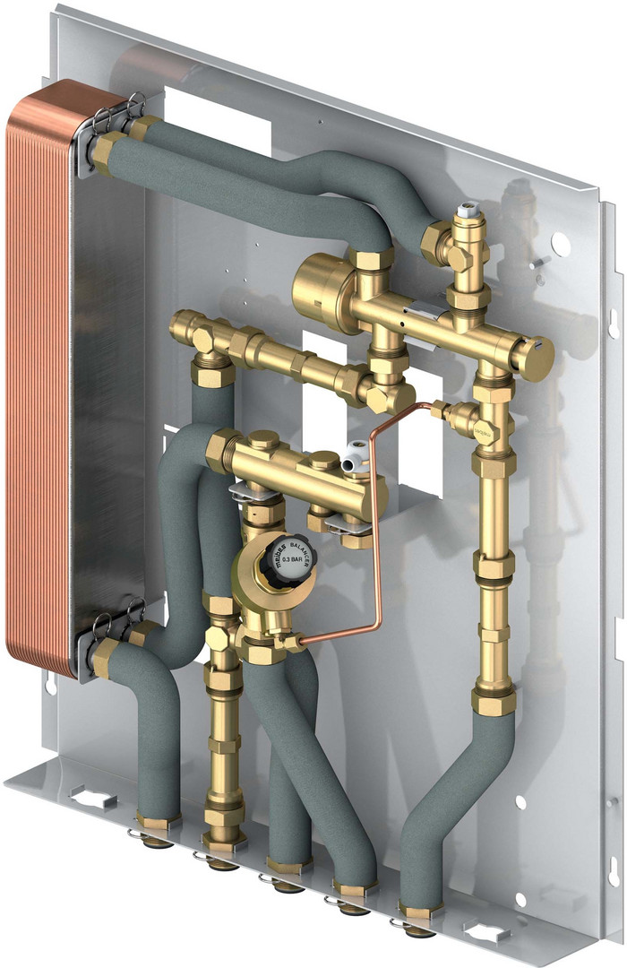 Flamco Wohnungsstation Logovital mit Zirkulationsbrücke, mit Balancer, 480mm breit