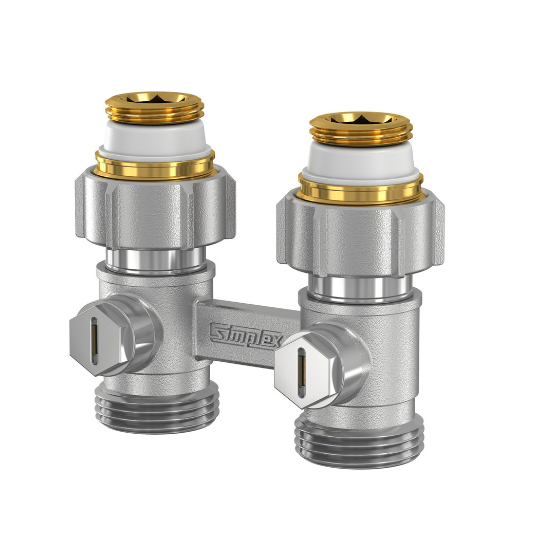 mit Kugelabsperrung für Ventil-Kompaktheizkörper, Betätigungskopf mit verdecktem Anschlag, rohrseitig mit Eurokonus für den Anschluss mit Klemmverschraubungen, 50 mm Achsabstand, mit selbstdichtenden Anschlussnippeln für Ventil-Kompaktheizkörper mit Rp 17" Hahnblock-Anschluss, Dichtmaterialien: EPDM, PTFE, max. Betriebstemperatur: 110 °C Dauertemperatur/130 °C kurzzeitig, max. Betriebsdruck 10 bar