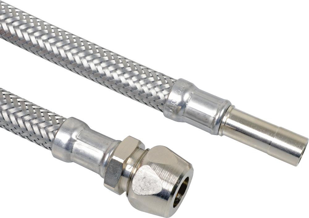 Flexibler Verlängerungs- und Verbindungsschlauch, mit Quetschverschraubung und Rohrstutzen