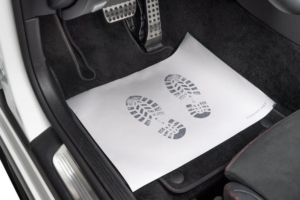 • 1 Fußmatte/Autoteppichschoner aus folienbeschichtetem Papier (PAPERPLAST) mit Motiv "FÜSSE"