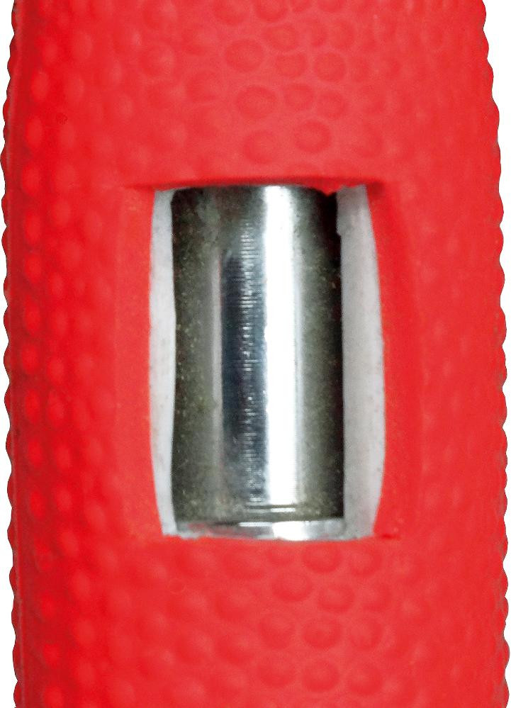 • Gummigriff an beiden Seiten verlängert und so geformt, dass eine Berührung mit heißen Metallteilen nicht möglich ist