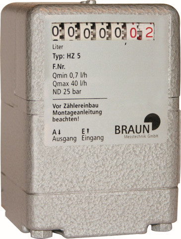 nach EN 12514-2 zur volumetrischen Mengenmessung von Heizöl (z. B. für den Einsatz in der Druckleitung vor der Brennerdüse bzw. in der Entnahmeleitung von Einstrangsystemen bei Ölfeuerungsanlagen), max. zulässiger Druck PS 25 bar, Betriebsmedien Heizöl, Messgenauigkeit ± 1 %, Anzeigebereich 0,01 bis 99999,99 l, Druckverlust 50-200 mbar, Temperaturbereich -5 °C bis +70 °C