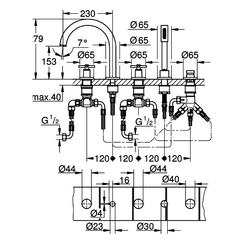 GROHE 5-Loch-Wannen-Kombination Atrio mit Kreuzgriffen, chrom K20547397