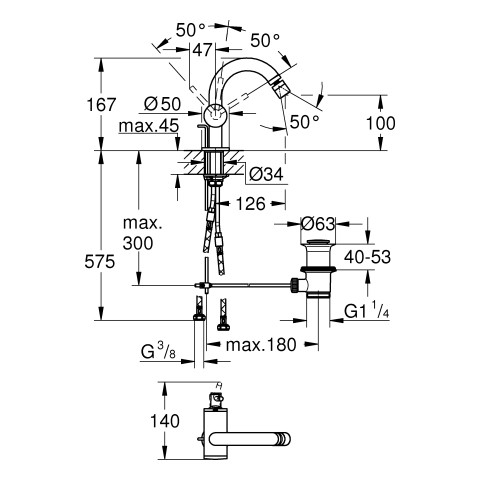 | Vorsprung Auslauf | 126 mm |