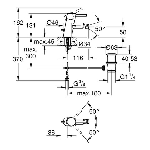 GROHE Bidet-Einhebelmischer Concetto 1/2", mit Zugstangen-Ablaufgarnitur, Temperaturbegrenzer, chrom