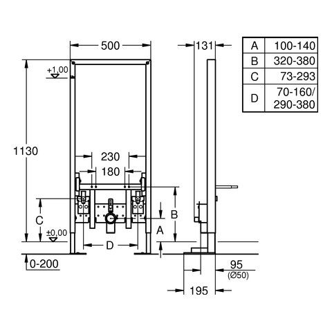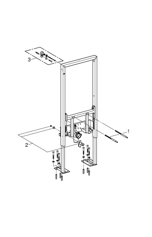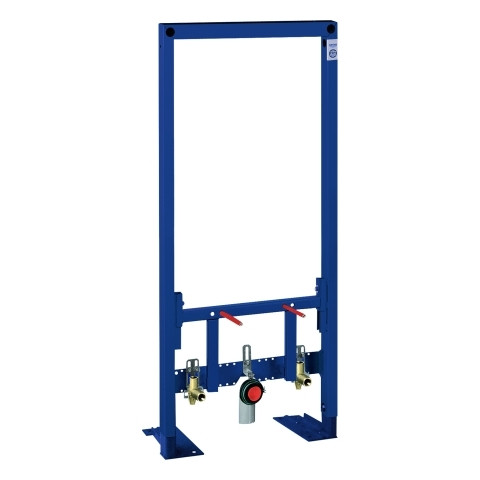 Vorwand- oder Ständerwandmontage, Stahlrahmen komplett vormontiert, höhenverstellbare Objekt- und Armaturenanschlüsse, mit Höhensicherung, Befestigungsmaterial, Bidet-Haltebolzen, HT-Ablaufbogen Ø 5 cm, Dichtung Ø 3,2 mm, 2 Armaturenanschlüsse 1/2", Wandwinkel 38 558 00M für Vorwandmontage müssen separat bestellt werden