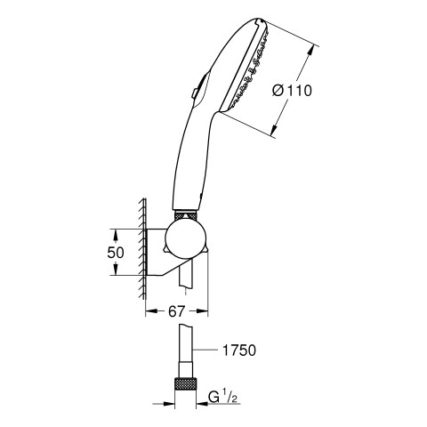 GROHE Brausegarnitur Tempesta 110 Durchfluss bei 3 bar 5,6 l/min, Wandbrausehalter, 2 Strahlarten, chrom K21868958