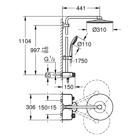 GROHE Duschsystem Euphoria SmartControl 310 Duo mit AP-Thermostat, Wandmontage, chrom 179350