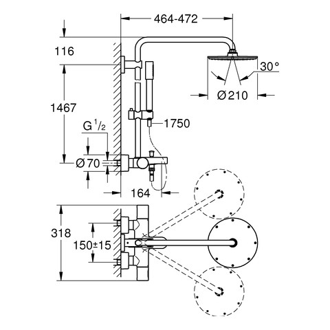 GROHE Duschsystem Rainshower 210 chrom, mit AP-Wannenthermostat, schwenkbarer Duscharm 45cm