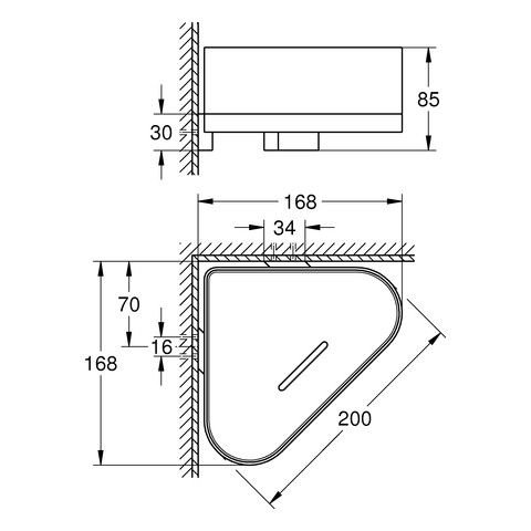 GROHE Eck-Duschablage Selection mit Halterung, cool sunrise K20552536