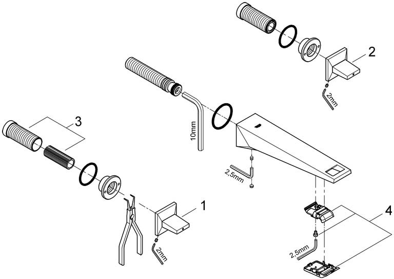 GROHE Fertigmontageset Allure Brilliant UP-Waschtisch-3-Loch-Wandarmatur, 1/2", supersteel K20546739