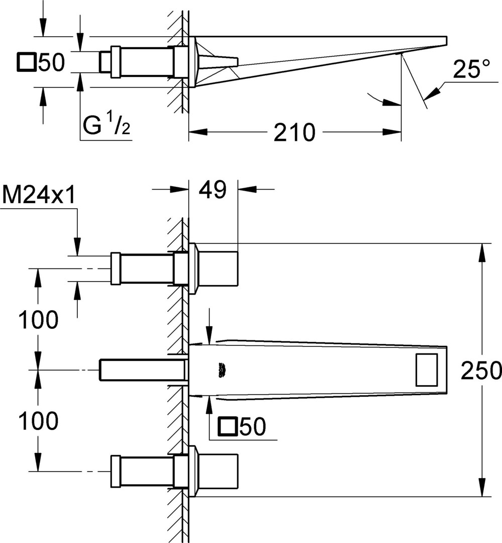 GROHE Fertigmontageset Allure Brilliant UP-Waschtisch-3-Loch-Wandarmatur, 1/2", chrom K20546737