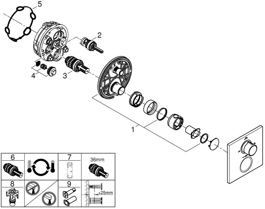 GROHE Fertigmontageset Allure UP-Wannen-Thermostat, 2-Wege-Umstellung, chrom K20546859