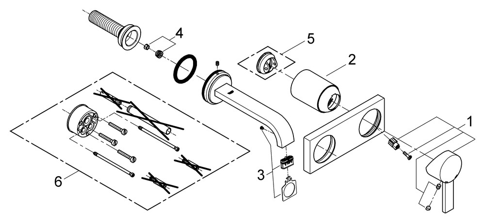 GROHE Fertigmontageset Allure Waschtisch-2-Loch-Wandarmatur, Ausladung 17,2 cm, chrom