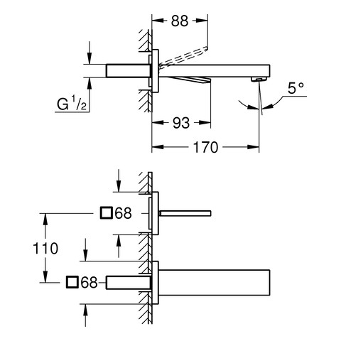 GROHE Fertigmontageset Eurocube Joy UP-Waschtisch-2-Loch-Wandarmatur, Ausladung 17cm, chrom