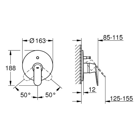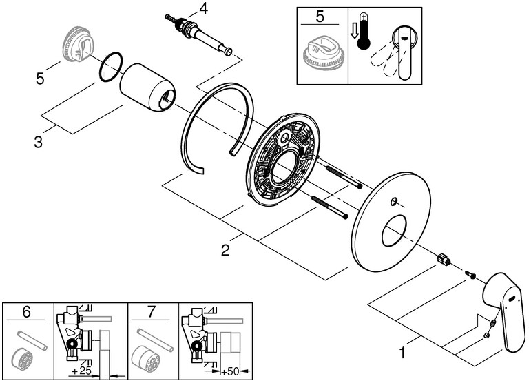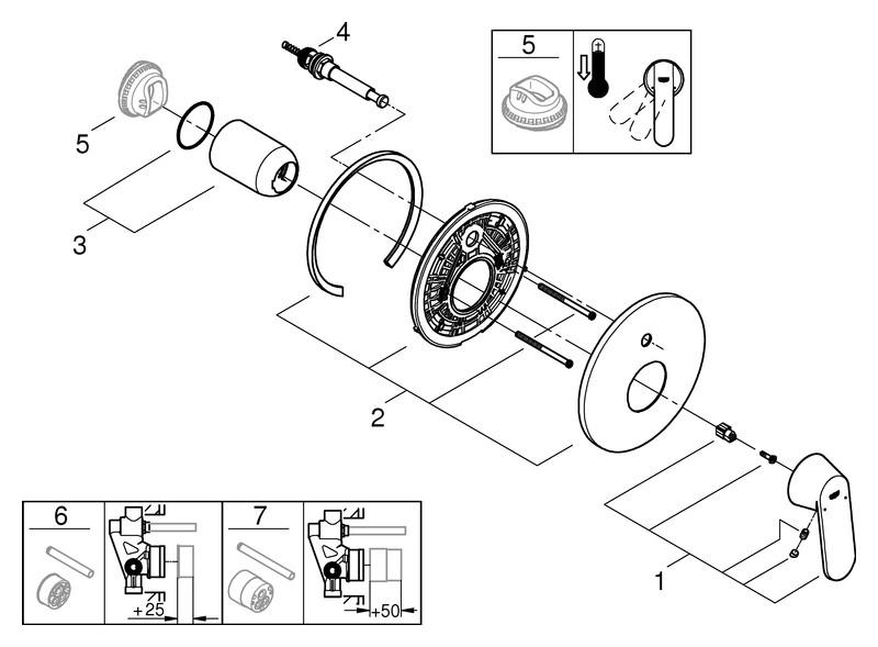 für 35 501 (ohne Einbaukörper), automatische Umstellung: Wanne/Brause, Rosetten- und Schaftabdichtung, verdeckte Befestigung