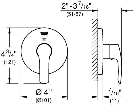 GROHE Fertigmontageset Eurosmart chrom, UP-Brause-Einhebelmischer, 3-Wege-Umstellung