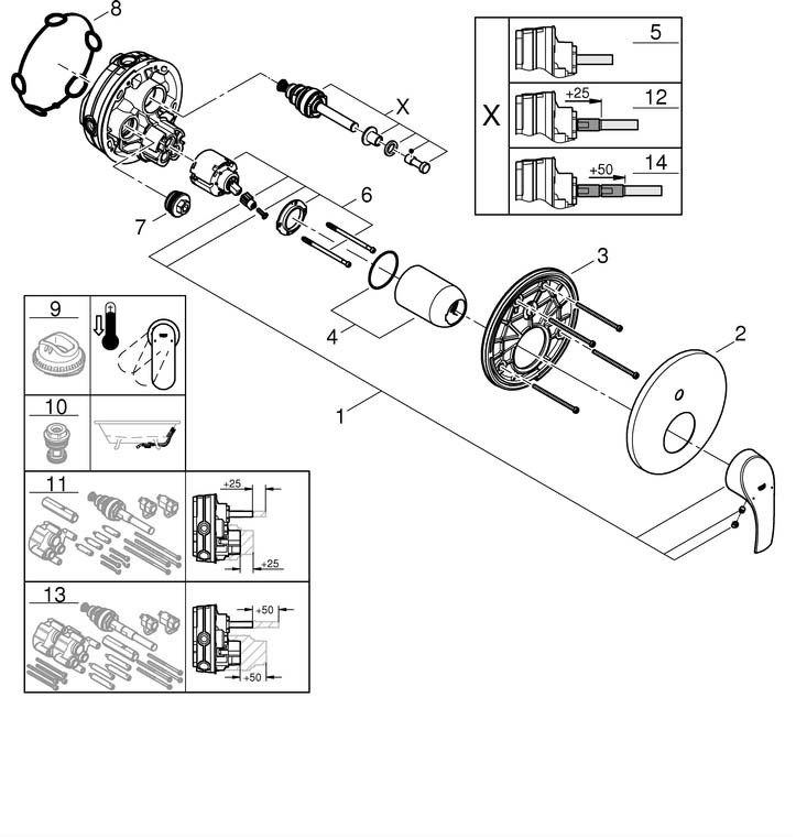 GROHE Fertigmontageset Eurosmart UP-Einhebel-Wannenmischer, chrom 194148