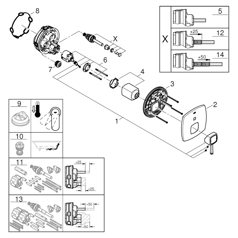 GROHE Fertigmontageset Grandera UP-Wannen-Einhebelmischer, chrom K20548072
