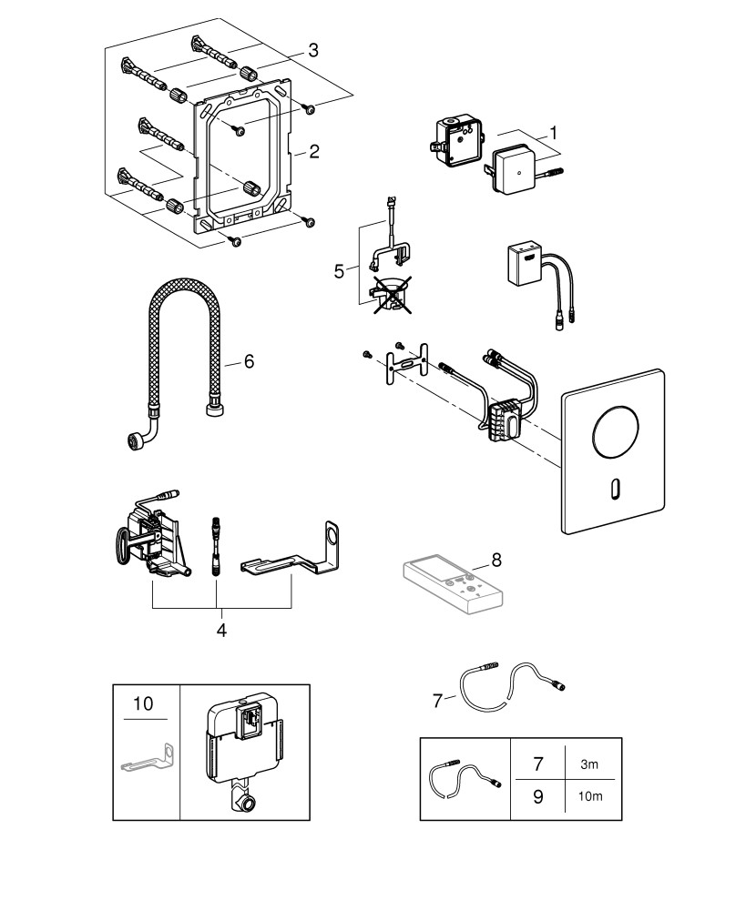 mit Trafo 100-240 V AC, 50-60 Hz, 6,75 V DC, Infrarot-Sensor und Bluetooth-Modul für bidirektionale Kommunikation, mit Auslese-, Einstellungs- und Servicefunktionen, Long-Life Oberfläche, Frontplatte 15,6 x 19,7 cm, Servomotor, zur Kombination mit Rapid SLX (außer bei 39 865 000) bitte Revisionsschacht 66 791 000 bestellen, Reichweite bis zu 10 m abhängig von verwendeten Wand- und Bodenbelägen, Auslesefunktionen passwortgeschützte Überwachung, App erkennt automatisch alle Produkte im Empfangsbereich, Anzahl automatischer Spülungen/Zeitpunkt letzte Spülung, Verbrauch pro Tag/der letzten 30 Tage, Einstellungen Reichweite und Nachlaufzeit, automatische Spülung, Reinigungsmodus, An/Aus Zeitsteuerung, Service Speichern und Senden von Profilen, Zurücksetzen aus Werks- und Benutzereinstellungen
