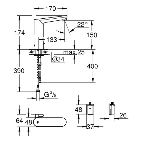 GROHE Infrarot-Waschtisch-Armatur Eurosmart CE 1/2", L-Size, mit Mischung, Batteriebetrieb, chrom